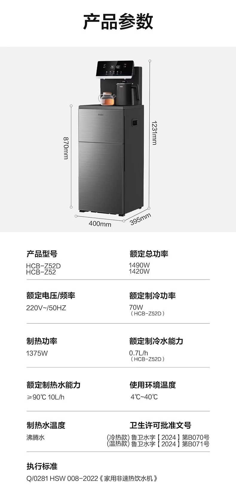 • 【政府补贴】海尔茶吧机家用新款客厅全自动智能饮水机一体Z52